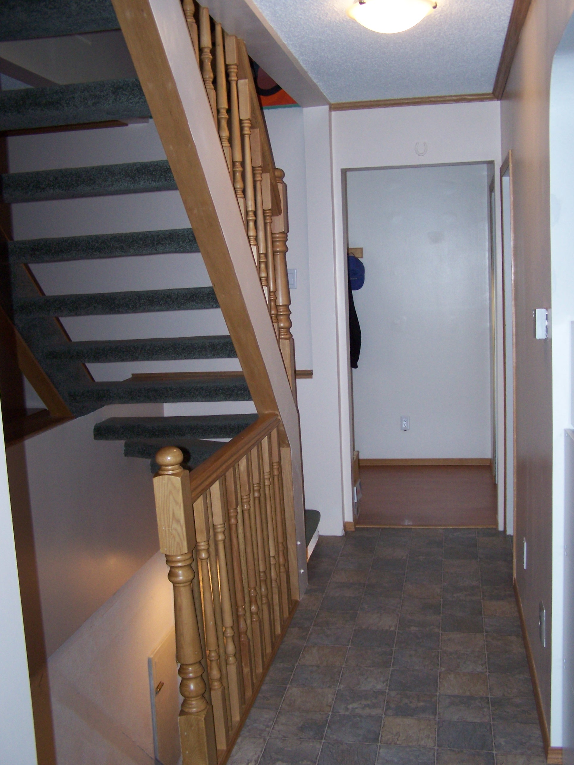 Main Level – Hallway The following photos are of the hallway on the main level including the staircases to the second story and basement.