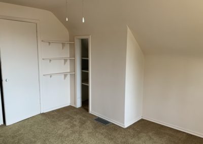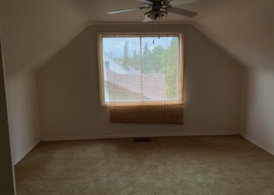 The following photos are of the north bedroom located on the second story. The first photo appears a little darker from the natural sunlight coming in through the window. You can see how bright the room is and the color of it in the second two photos.